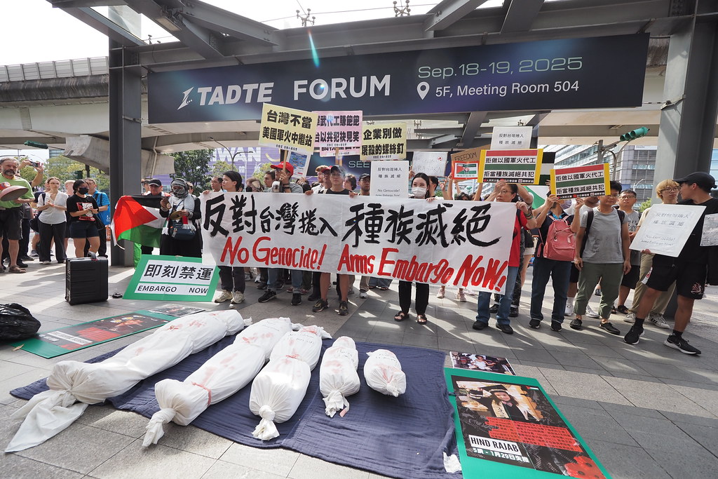「台北國際航太暨國防工業展」於9月18日至20日在台北南港展覽館舉辦。抗議團體在最後一天的下午2點在場外集會,指出聯合國獨立調查小組已作出調查報告,認定以色列在巴勒斯場犯下種族滅絕行為。在各種公開資訊中,可確認其中至少有17家在以色列的軍火中扮演重要角色,可說是直接參與了加薩的種族滅絕,包括凌華、全訊、榮鋼、精鋼等。其它還有12家有參與種族滅絕的高度嫌疑、49家廠商則與以色列有商業往來或企業交流。有參與者表示,航太展被視為「科技」的展覽,但大眾應該看到其中的許多科技,是建立在踐踏人權上面的。抗議團體呼籲,政府應調查並公開相關數據,並停止禁運,莫讓台灣成為種族滅絕的幫兇。