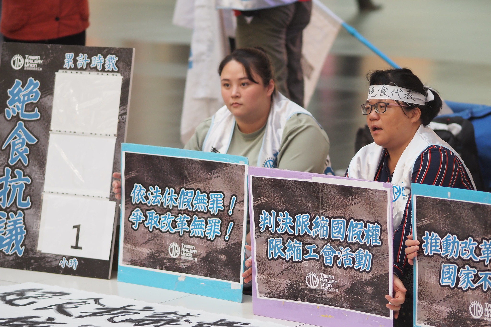 台鐵產業工會今(11/6)天起,由理事長曹嘉君、理事王傑、秘書長朱智宇等人,在台北車站進行100小時的絕食抗議。