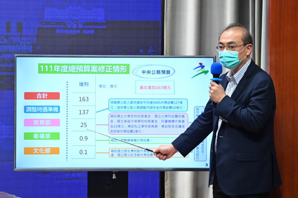 行政院發言人羅秉成補充,行政院態度是,經濟成果跟全民分享不能忽略退休軍公教過去對政府與人民的努力,從勞工基本薪資、軍公教薪資、到退休人員退休金調整一併優予斟酌,確切調幅將尊重專業評估機制,不過由於現在要編列預算,所以暫予匡列十億元。